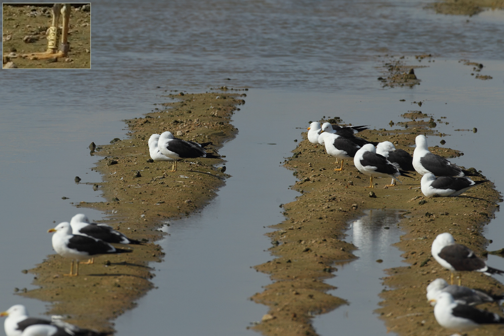 Immature fuscus, probably ringed in 2009 and now 3cy bird. Difficult to determine moult stage from this distance. There seems to be no mirror on P10.